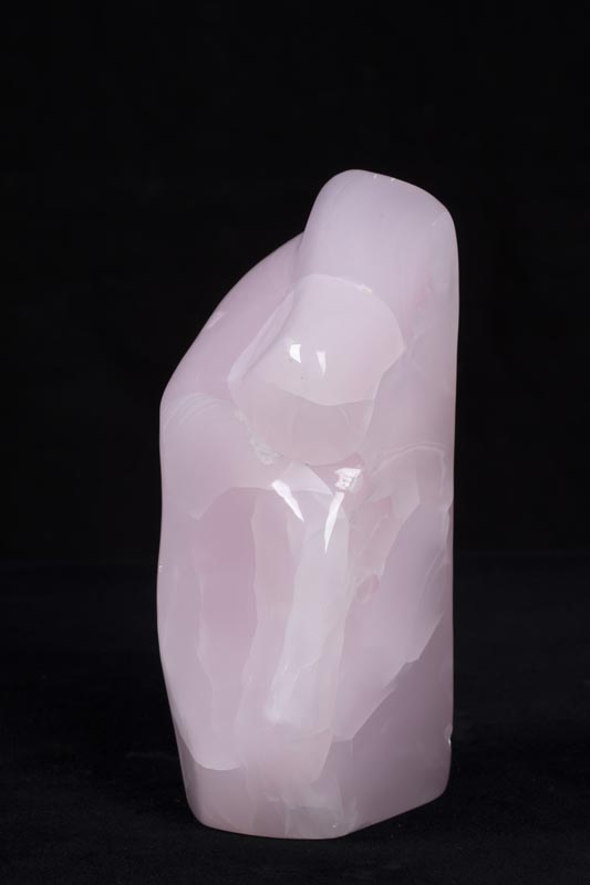 Beau bloc poli de mangano-calcite rose. Cette roche est naturellement colorée de rose laiteux. Belle pièce. Dimensions : 21 x 9 x 8 cm.