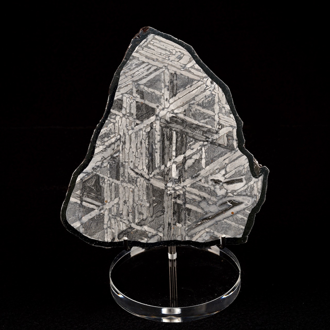 Très beaux graphisme pour cette tranche de météorite pallasite. Magnifique alliance du fer et du nickel. Très esthétique et de belle dimension. (Sibérie – Russie).